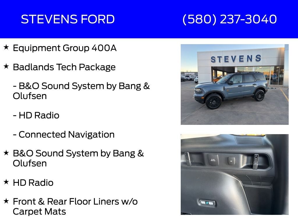 B&O Sound System by Bang & Olufsen, Badlands Tech Package, Connected Navigation, Equipment Group 400A, Front & Rear Floor Liners w/o Carpet Mats, HD Radio, Wheels: 17 Matte Black-Painted Aluminum.