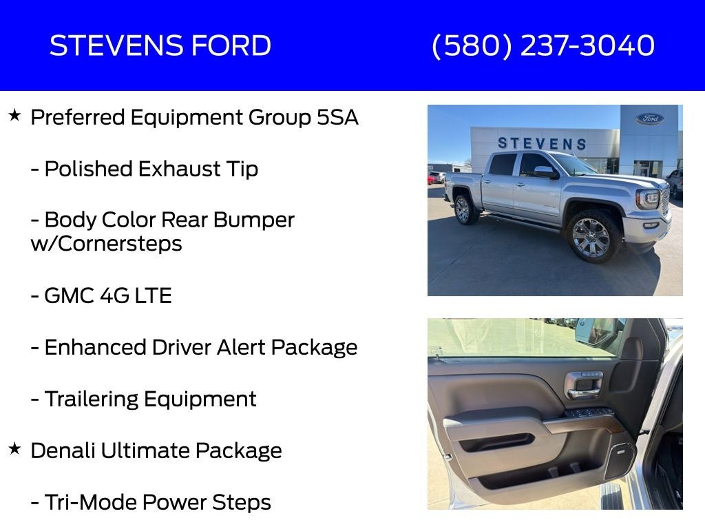 2018 GMC Sierra 1500 Denali 4WD 8-Speed Automatic with Overdrive EcoTec3 6.2L V8 Quicksilver Metallic ** ACCIDENT FREE **, 8-Speed Automatic with Overdrive, 4WD, Jet Black Leather, 110-Volt AC Power Outlet, 150 Amp Alternator, 1st & 2nd Row Color-Keyed Carpeted Floor Mats, 2-Speed Active Electronic AutoTrac Transfer Case, 6 Rectangular Chromed Tubular Assist Steps, 8 Multi-Color Customizable Driver Display, Auto-Dimming Inside Rear-View Mirror, Body Color Lower Front Bumper, Body Color Rear Bumper w/Cornersteps, Bose Speaker System, Chrome Bodyside Moldings, Chrome Door Handles, Chrome Mirror Caps, Chrome Recovery Hooks, Color-Keyed Carpeting, Deep-Tinted Glass, Denali Ultimate Package, Driver & Front Passenger Illuminated Vanity Mirrors, Dual-Zone Automatic Climate Control, Electric Rear-Window Defogger, Enhanced Driver Alert Package, EZ Lift & Lower Tailgate, Forward Collision Alert, Front Frame-Mounted Black Recovery Hooks, GMC 4G LTE, GMC Connected Access, Heated & Ventilated Front Bucket Seats, Integrated Trailer Brake Controller, IntelliBeam Automatic High Beam On/Off Headlight, Lane Keep Assist, Leather Wrapped Heated Steering Wheel, Low Speed Forward Automatic Braking, Manual Tilt/Telescoping Steering Column, OnStar & GMC Connected Services Capable, Polished Exhaust Tip, Power Adjustable Pedals, Power Folding & Adjustable Heated Outside Mirrors, Power Sliding Rear Window w/Defogger, Power Sunroof, Power Windows w/Driver Express Up & Down, Preferred Equipment Group 5SA, Rear 60/40 Folding Bench Seat (Folds Up), Rear Wheelhouse Liners, Remote Keyless Entry, Remote Locking Tailgate, Remote Vehicle Starter System, Single Slot CD/MP3 Player, Steering Wheel Audio Controls, Theft Deterrent System (Unauthorized Entry), Thin Profile LED Fog Lamps, Trailering Equipment, Tri-Mode Power Steps, Ultrasonic Front & Rear Park Assist, Universal Home Remote, Wheels: 22 Aluminum w/Premium Paint.